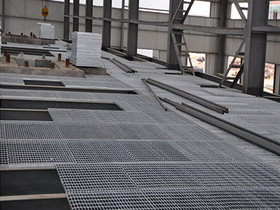 化工廠用鋼格板 鋼格板是用承載扁鋼和橫桿按照一定的間距進(jìn)行正交組合,通過焊接或壓鎖加以固定的開敞式鋼構(gòu)件;橫桿一般采用經(jīng)過扭絞的方鋼、也可采用圓鋼或扁鋼,材質(zhì)分為碳鋼和不銹鋼鋼格板主要用來做鋼結(jié)構(gòu)平臺(tái)板、溝蓋板、鋼梯的踏步板、建筑物吊頂?shù)取? 簡介 ···